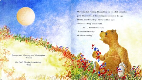 One crisp fall evening, Hanna Bear sat on a hill eating fat,